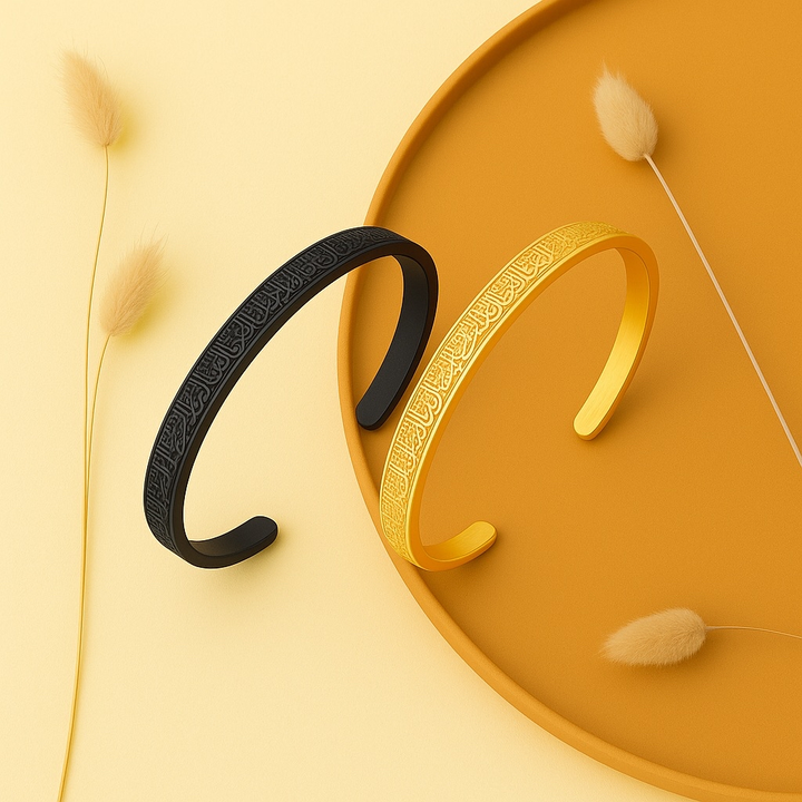 Chaque bracelet est gravé avec le verset du Trône (Ayat al-Kursi), non comme un talisman, mais comme un rappel discret de foi et de spiritualité. Le pack « Élégance & Foi » est idéal pour ceux qui veulent alterner selon l’occasion ou offrir un cadeau symbolique empreint de sens.